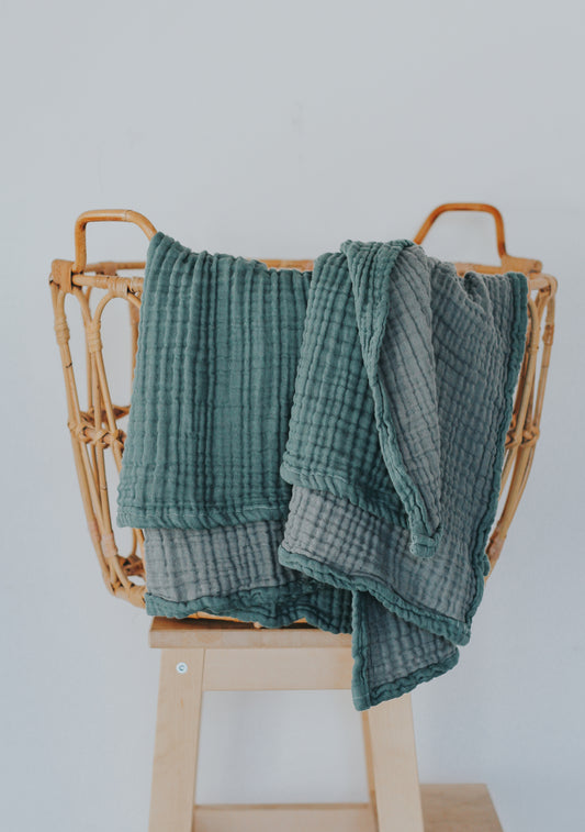 Small Muslin Blanket | Reversible Green