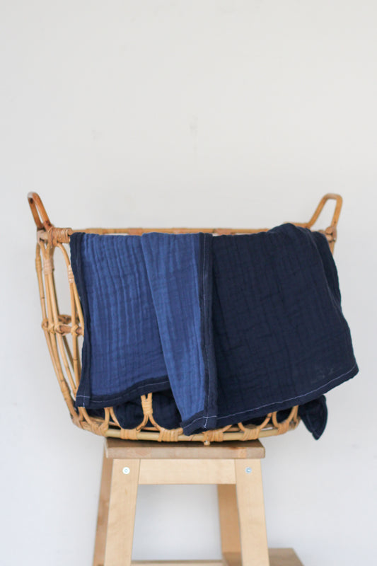 Muslin Blanket | Reversible Dark Blue